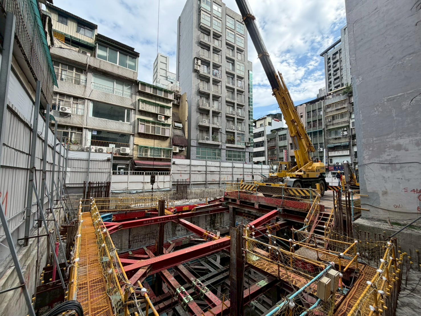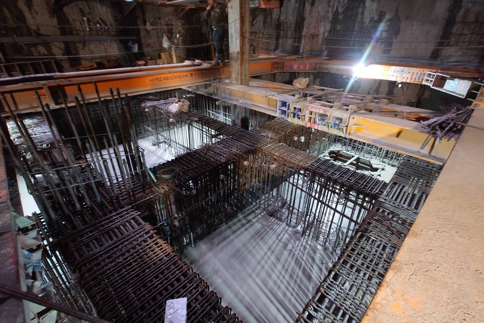 施工進度:B3F 柱牆鋼筋綁紮及 B3MF樑版模板組立作業中。