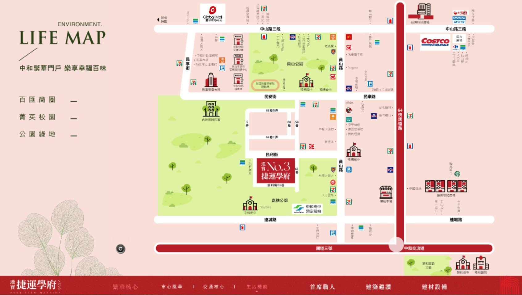 分局警消機關林立中和居住品質最好的公園校園行政特區。
