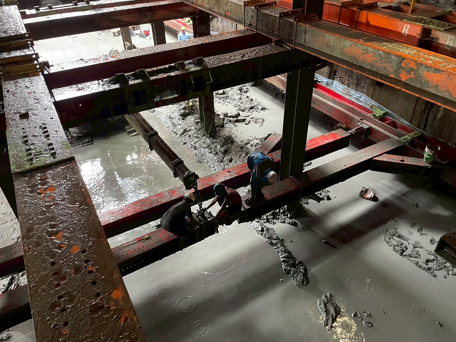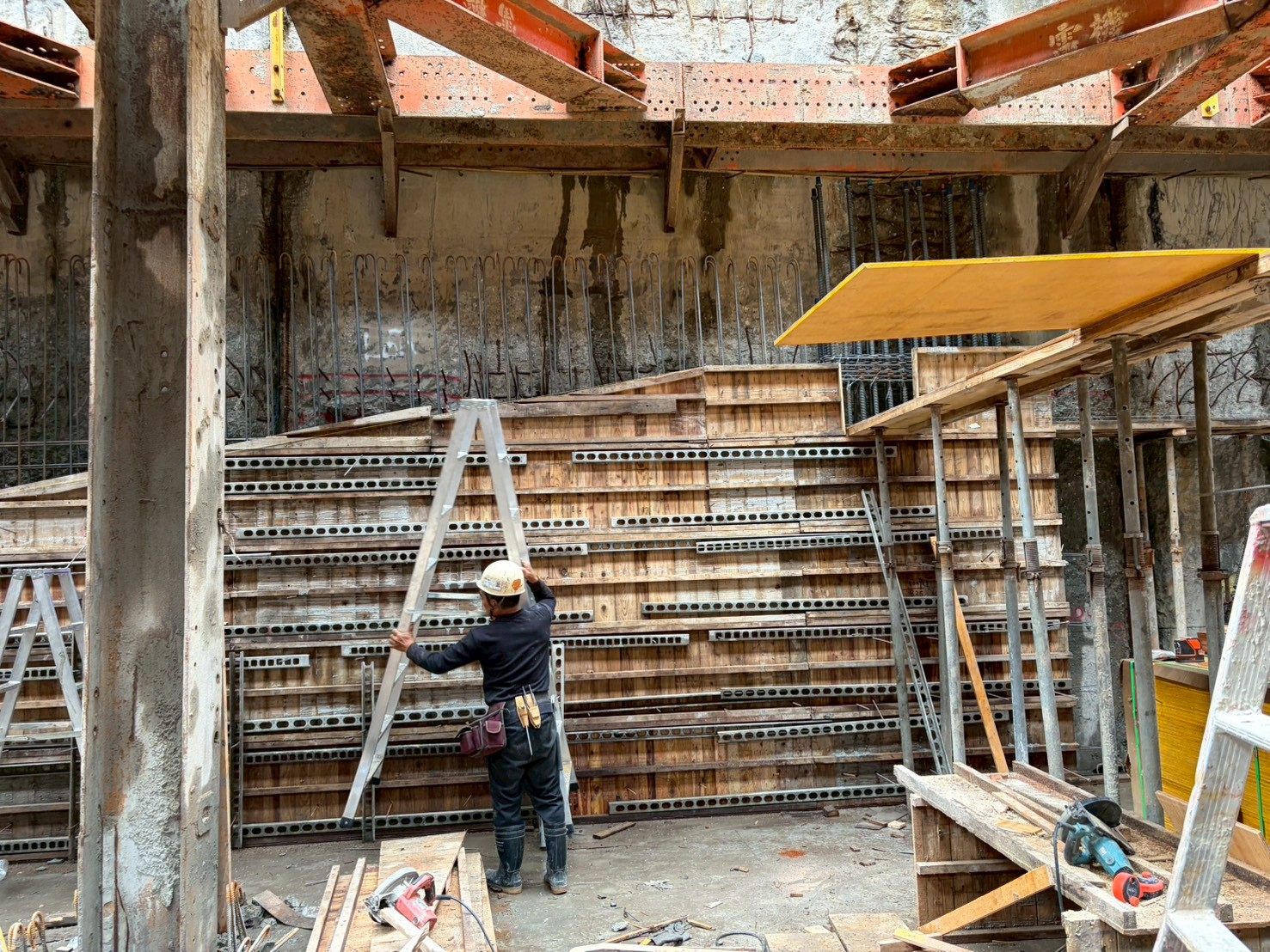 施工進度 : B3FL梁版模板組立及梁鋼筋綁紮。