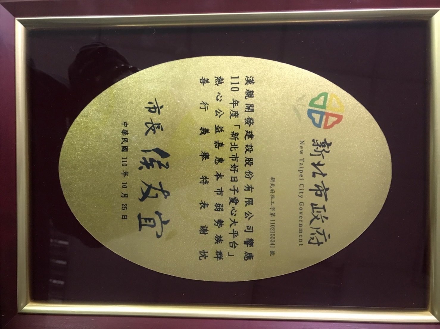 本集團「漢寶開發」及「漢親建設」響應110年度「新北市好日子愛心大平台」熱心公益,嘉惠新北市弱勢族群,善行義舉。分別榮獲新北市政府候友宜市長頒獎表揚